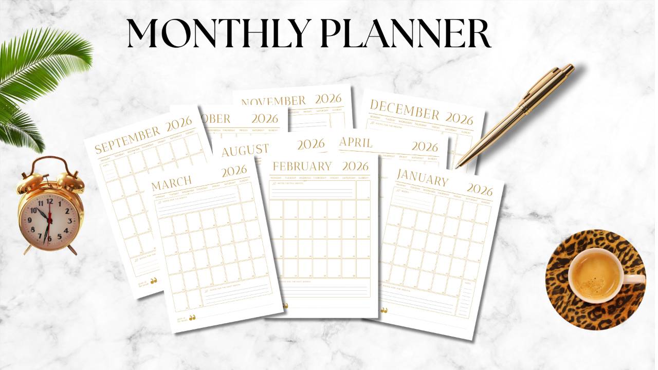 MONTHLY PLANNER (Jan–Dec 2026) — Dated