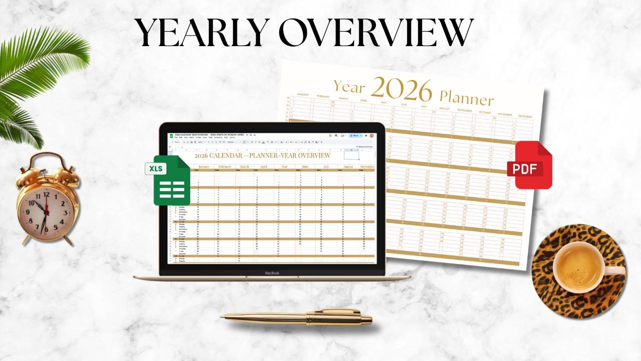 Yearly Planning Overview (PDF + Excel) — $19
