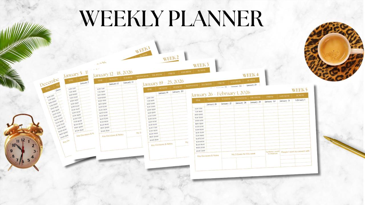 WEEKLY PLANNER (All weeks of 2026) — Dated