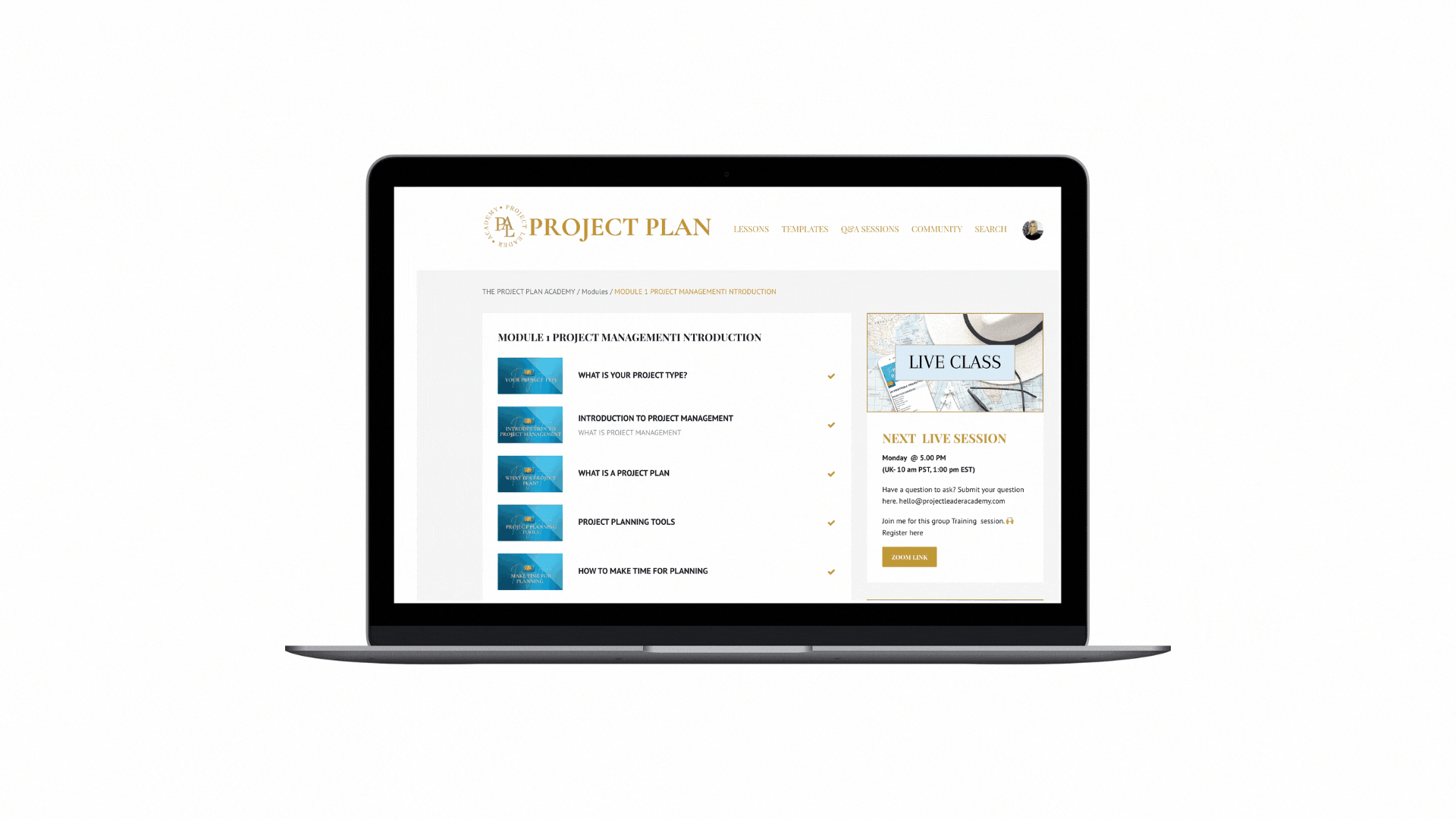 Get lifetime access to pre-recorded video lessons that guide you step by step through creating a complete project plan.